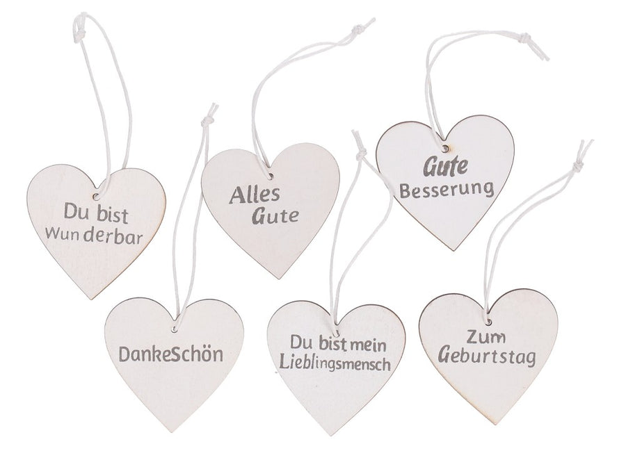 Herzhänger Holz 12 Wünsche sortiert weiss D5cm