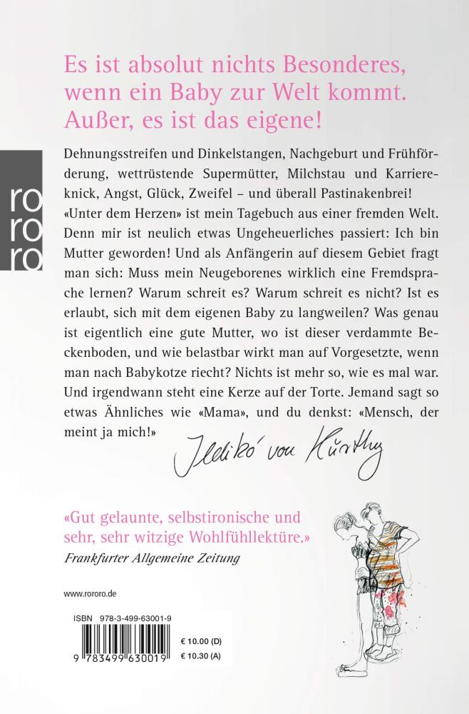 Das bewegende Buch "Unter dem Herzen" von Ildikó von Kürthy aus dem Rowohlt Taschenbuch Verlag ist ein ehrliches Tagebuch über das erste Jahr als Mutter. Mit viel Humor und Selbstironie beschreibt die Autorin ihre Erfahrungen: Dehnungsstreifen und Dinkelstangen, wettrüstende Supermütter, Milchstau und Karriereknick, Angst, Glück, Zweifel - und überall Pastinakenbrei! Ein authentischer Blick auf das Muttersein mit all seinen Höhen und Tiefen.