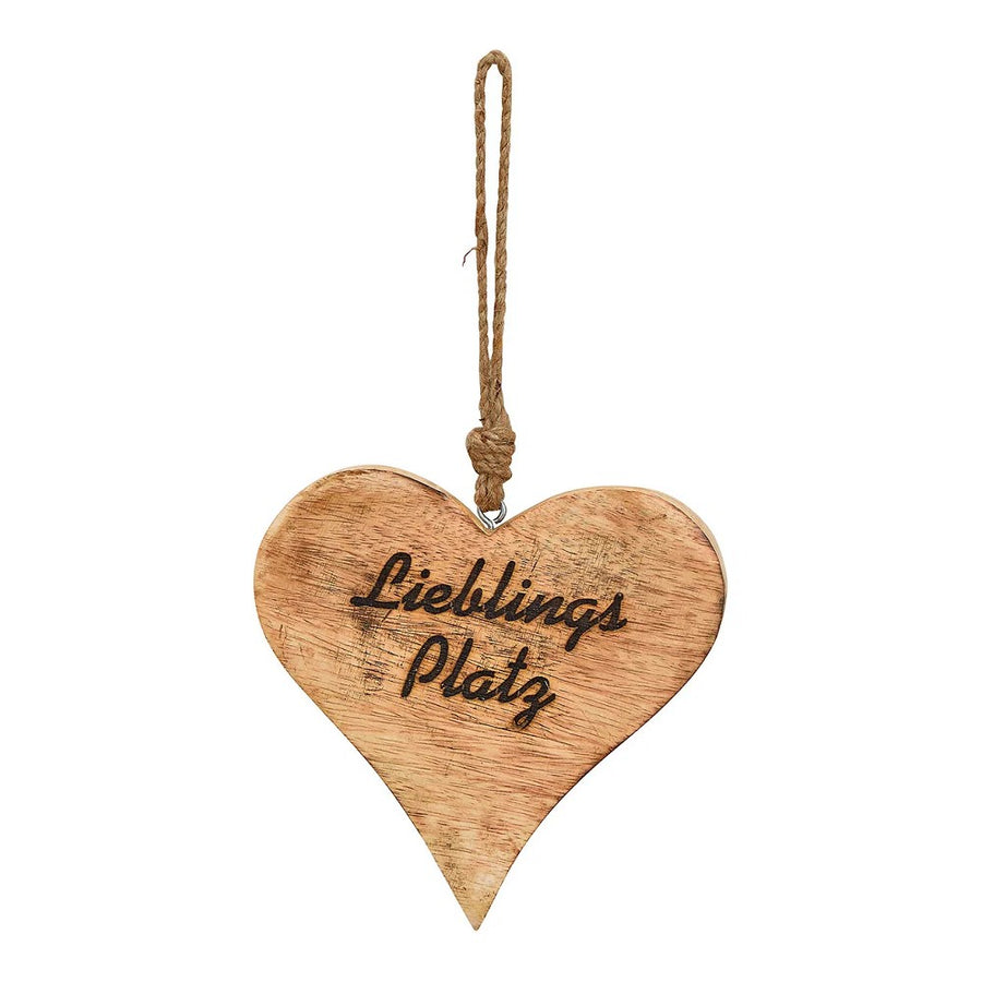 Hänger Herz Lieblingsplatz aus Holz Braun 20x20x2cm mit Spruch "Lieblingsplatz" und Bastaufhängung, herzliche Wohnraumdekoration