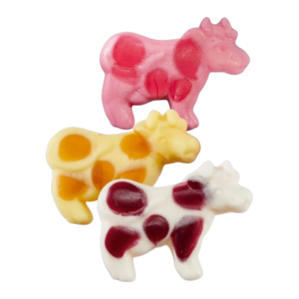 Luftig-zarte Schaumzucker-Kühe mit einer perfekten Balance zwischen süßer Leichtigkeit und cremigem Milchgeschmack. Die verschiedenen natürlichen Aromen sorgen für ein abwechslungsreiches Genusserlebnis mit authentischen Fruchtgeschmäckern.