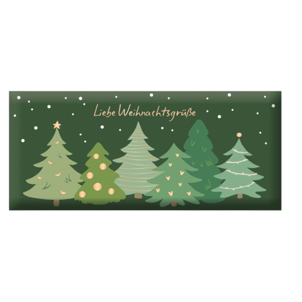 Die goldene Aufschrift "Liebe Weihnachtsgrüße" macht diese Schokolade zu einem stilvollen und persönlichen Geschenk. Ideal als kleine Aufmerksamkeit oder Teil eines größeren Weihnachtsgeschenks.