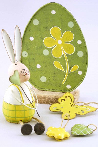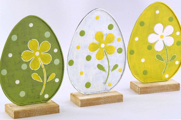 Diese dekorativen Eier aus Metall und Holz in den Farben Grün, Weiß und Gelb bringen eine frische und frühlingshafte Note in Ihr Zuhause. Perfekt für alle, die eine stilvolle und saisonale Dekoration schätzen.