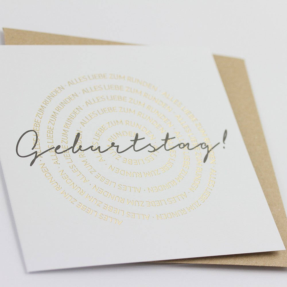 Quadratische Doppelkarte mit dem Text „Alles Liebe zum Runden Geburtstag!“. Format: 115 x 115 mm. Ideal als stilvolle Karte für Zahlengeburtstage, persönliche Glückwünsche oder als Ergänzung zu Geschenken.