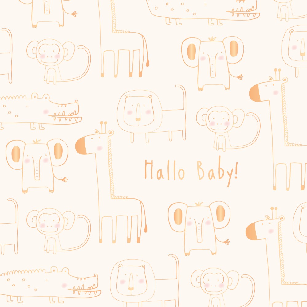 Quadratische Doppelkarte mit dem Text „Hallo Baby!“. Format: 115 x 115 mm. Ideal als stilvolle Karte zur Geburt, für persönliche Glückwünsche oder als Beilage zu einem Geschenk für das Neugeborene.