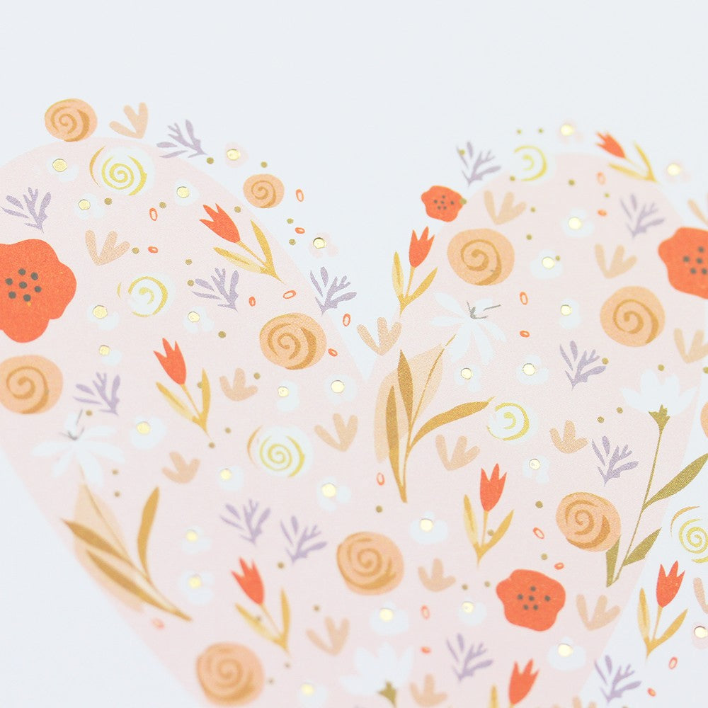 Quadratische Doppelkarte mit aufgedrucktem Herz-Motiv, ohne Text. Format: 115 x 115 mm. Ideal als stilvolle Grußkarte für persönliche Nachrichten, Glückwünsche oder als Beilage zu Geschenken zu verschiedensten Anlässen.