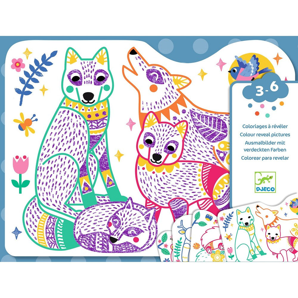 Familie des Waldes Ausmalen mit verdeckten Farben - Magisches Mal-Set mit 12 Überraschungsbildern